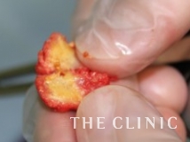 本日は他院で治療後に残存しているしこりを摘出しました。