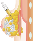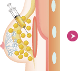 - 脂肪が分散するように注入。豊富な経験と高度な技術を要する。