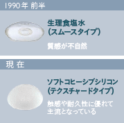 初期のシリコンバッグは耐久性が低く、バッグが破損して漏出した際にバストが変形したり炎症を起したりするトラブルが多発していました。そのためメーカー各社が改良を重ねるたびに耐久性や触感、質感の異なるバッグが増えていきました。1990年代には安全性から生理食塩水バッグが推奨されていましたが質感が不自然ということもあり、現在ではソフトコヒーシブシリコンが主流。なかでも、表面がつるつるしているスムースタイプではなく、リップリングなどを起こしにくいとされるテクスチャードタイプが支持を集めています。
