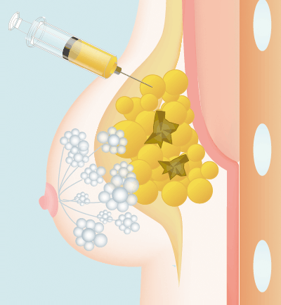 触診だけでは把握できないことも多いため、加えて壊死した脂肪の状態や正確な位置を超音波エコーなどの視覚的検査で確認します。だいたいのものは、脂肪溶解注射で溶かしたり、吸引したりすることで壊死した脂肪を除去することが可能です。この場合、エコー画像などを確認しながら行うと、取り残しを防ぐことができます。