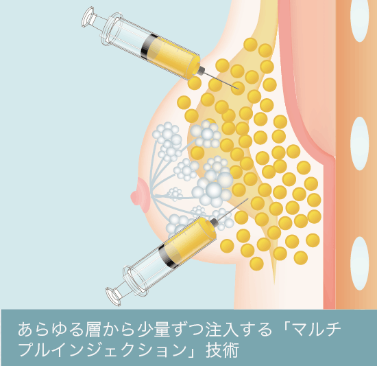 また、たくさんの方が心配されるのが乳がんですが、脂肪注入によるしこりであれば、そのしこりが悪化して乳がんになるということは考えられません。ただし、そのしこりが脂肪によるものか、乳がんの可能性があるものかは、症状からは判別がつかないため検査が必要です。