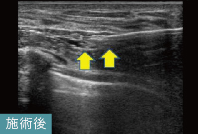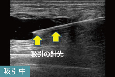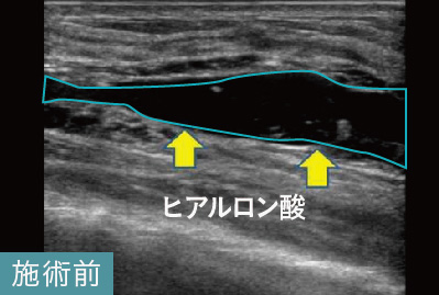 吸収されなかったヒアルロン酸がエコーで黒い塊として映し出されており、しこりと確認できます。