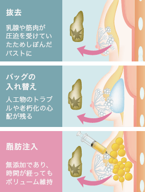 なかでもハイドロジェルやCMC(ハイドロキシメチルセルロース)などは耐久性に問題があるのか、10年も経っていないのに、破損して周囲に炎症を起こしているケースが多数あります。さらに、フランスPIP社製のシリコンバッグの場合は破裂の危険性があることが判明。その兆候がなくても抜去することを促す注意喚起が、厚生労働省からも出されています。